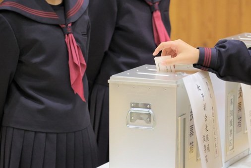 候補者ひとり一人の主張を生徒たちは真剣に聞き、考え、粛々と投票が行われました。